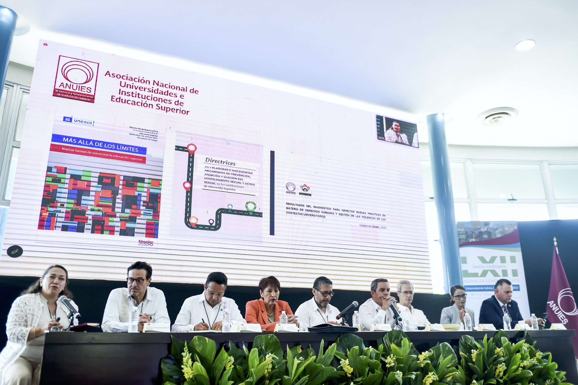 Instituciones de Educación Superior (IES), durante la LXII Asamblea General Ordinaria de la Asociación Nacional de Universidades e Instituciones de Educación Superior (ANUIES), que se realizó de manera presencial en la Universidad de Colima.