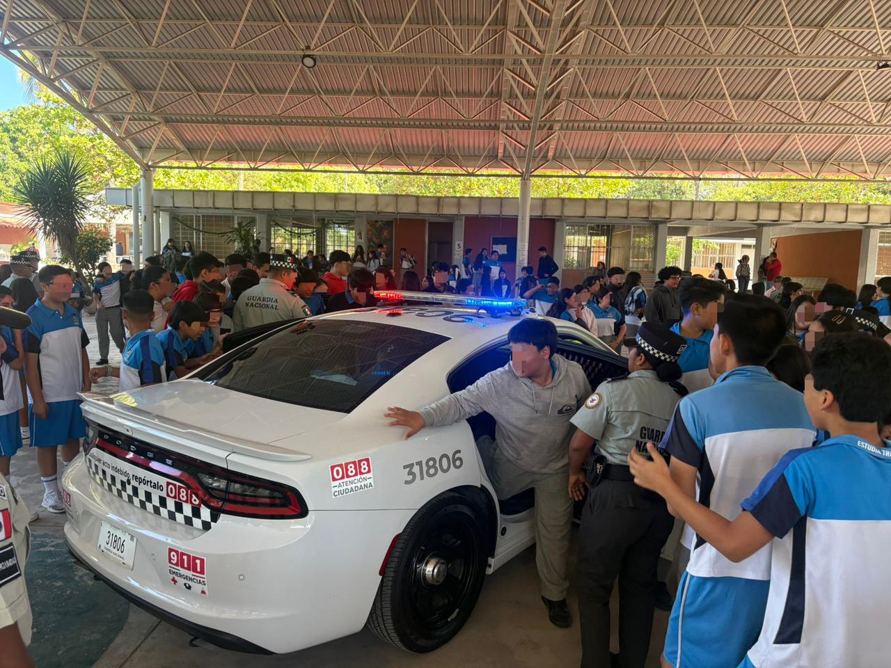 Para fortalecer la interacción de las y los integrantes de la Guardia Nacional con estudiantes y personal docente de nivel secundaria en el estado de Colima, se llevó a cabo la exhibición de vehículos, equipo táctico y V-Top con que día a día realizan las actividades para contribuir a la seguridad de toda la población colimense.