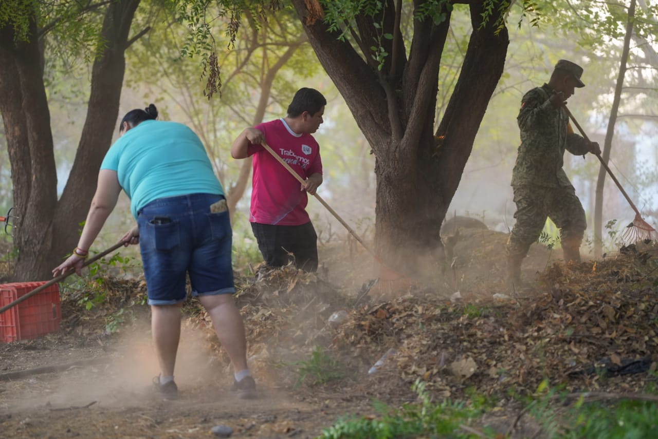 Villa de Álvarez, Col.- Con la participación de efectivos del Ejército Mexicano, trabajadores sindicalizados y funcionarios y funcionarias municipales, el Ayuntamiento de Villa de Álvarez realizó este sábado una jornada de limpieza en el arroyo El Trejo, a la altura de las colonias Rancho Blanco y Tabachines y en la colonia Puerta del Centenario.