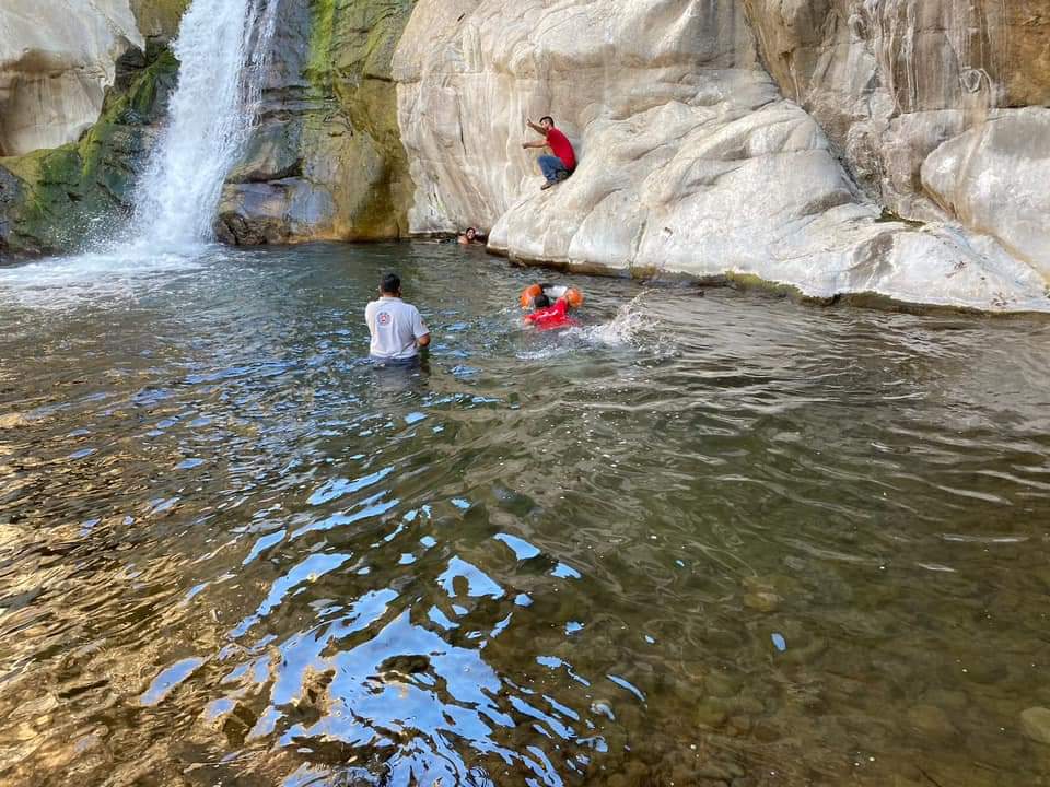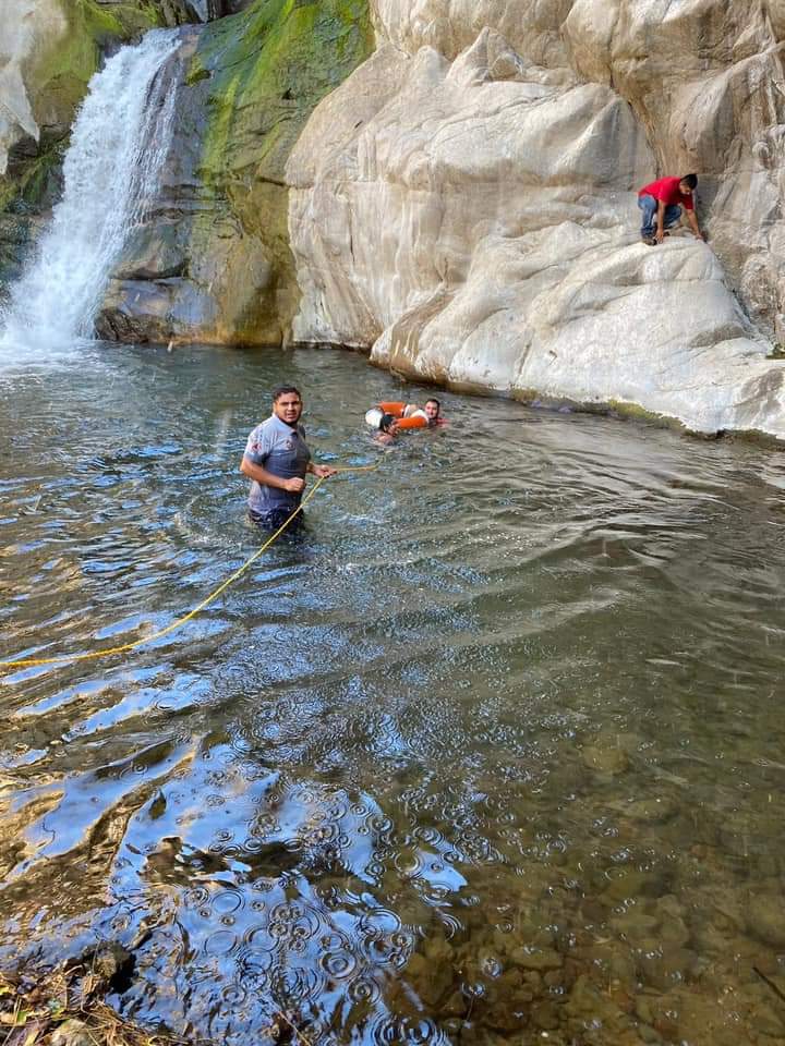 Oficiales de la Unidad Municipal de Protección Civil Minatitlán, realizaron el rescate de una mujer en el balneario el “SALTO” en el área de la cascada.