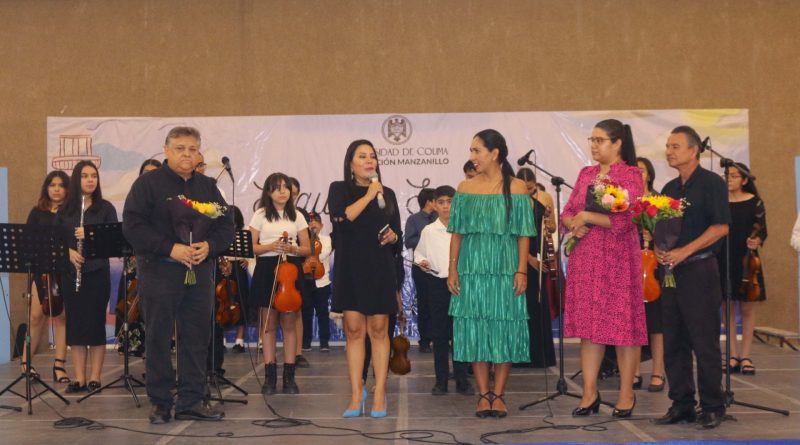 Al evento asistieron Ana María Gallardo, delegada de la UdeC en Manzanillo y Nohema Larios Deniz, directora del CUBAM, así como docentes, madres, padres de familia y audiencia general. En un primer momento, el programa comenzó con la participación del coro infantil que dirige Jorge Hernández, en el que pequeñines de cuatro a trece años deleitaron al público con obras como “Sonidos de la música”, “El niño robot” y “El negrito bailarín”.