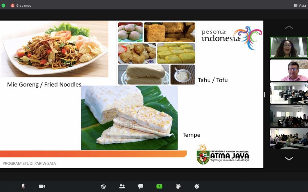 En la primera sesión, Ruth Jael Sugías Elizalde y el chef José de Jesús Solís Marín, profesores de la Facultad de Turismo de la UdeC, dictaron la conferencia: “Patrimonio cultural y gastronómico de México”. La atendieron estudiantes de la Escuela de Turismo de la Universidad Atma Jaya, en Indonesia