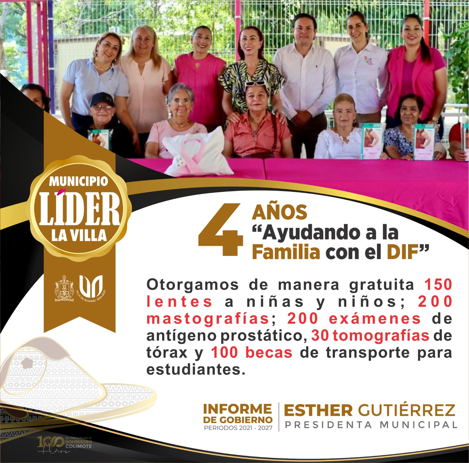 »En apoyo a los grupos vulnerables, desde el DIF Municipal este año otorgamos de forma gratuita 150 lentes a niñas, niños y adolescentes; realizamos 200 mastografías para la detección oportuna del cáncer de mama; 200 exámenes de antígeno prostático para varones, y 30 tomografías de tórax para la detección oportuna de cáncer de pulmón», señaló la Alcaldesa.