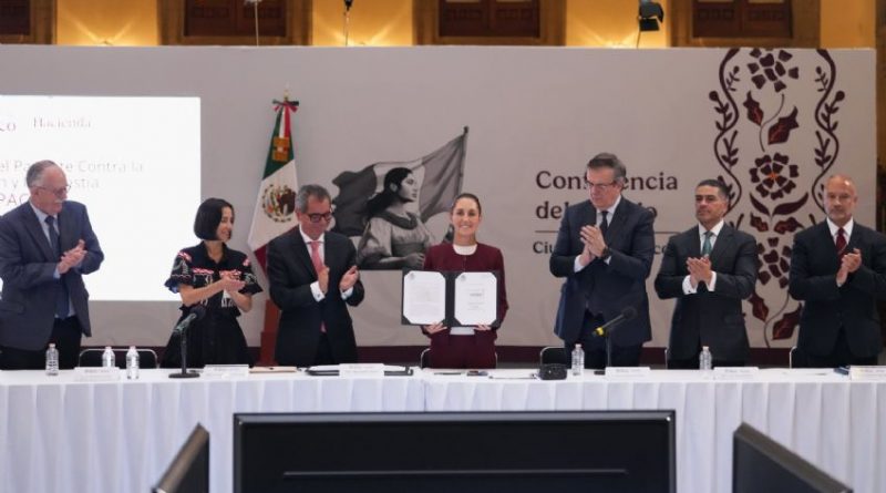 La presidenta de México, Claudia Sheinbaum Pardo, encabezó una reunión con empresarios del sector de alimentos y comercio en Palacio Nacional, donde se acordó renovar el Paquete Contra la Inflación y la Carestía (PACIC) por seis meses más, manteniendo el precio de los 24 productos de la canasta básica en 910 pesos hasta noviembre de 2025.