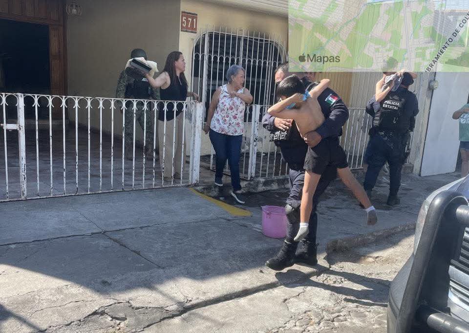 Elementos de la Policía Estatal brindaron apoyo inmediato ante el reporte de un incendio registrado la mañana de este jueves en una vivienda ubicada sobre la calle Jiménez, en la ciudad de Colima.