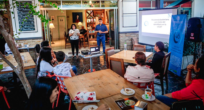 Como parte de las Charlas de Café que realiza la Coordinación General de Investigación para conmemorar 40 años de hacer ciencia en la Universidad de Colima, esta semana se llevó a cabo la conferencia: “La resistencia bacteriana, ¿un jinete del apocalipsis en la salud?”, a cargo del Dr. Fabian Rojas Larios, profesor-investigador de la Facultad de Medicina.