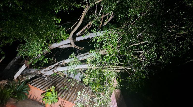 Villa de Álvarez, Col.- La fuerte lluvia de este sábado provocó la caída de un árbol sobre una vivienda en la comunidad de Juluapan, el cual fue retirado por personal de Protección Civil de Villa de Álvarez.