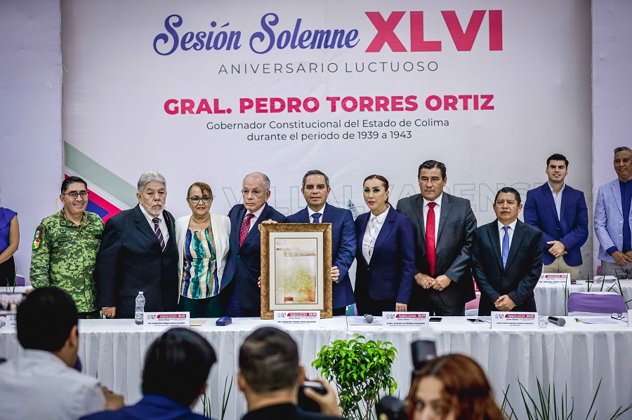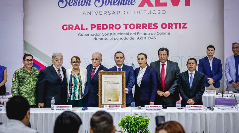Durante una sesión solemne, el Cabildo del Ayuntamiento de Villa de Álvarez aprobó la creación de la presea al Mérito Cívico “General Pedro Torres Ortiz”, un reconocimiento máximo que se entregará cada año en este municipio. Además, aprobaron una serie de acciones para reconocer la vida y obra de quien fuera fundador de la Universidad Popular de Colima, hoy Universidad de Colima.