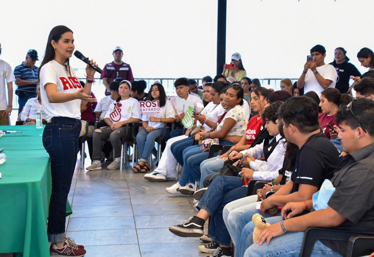 La candidata de la alianza “Sigamos Haciendo Historia”, a la presidencia municipal de Manzanillo, Rosi Bayardo, sostuvo un dialogo con jóvenes que participaron en un foro en el que expresaron sus inquietudes y propuestas que fueron escuchadas por la candidata morenista.
