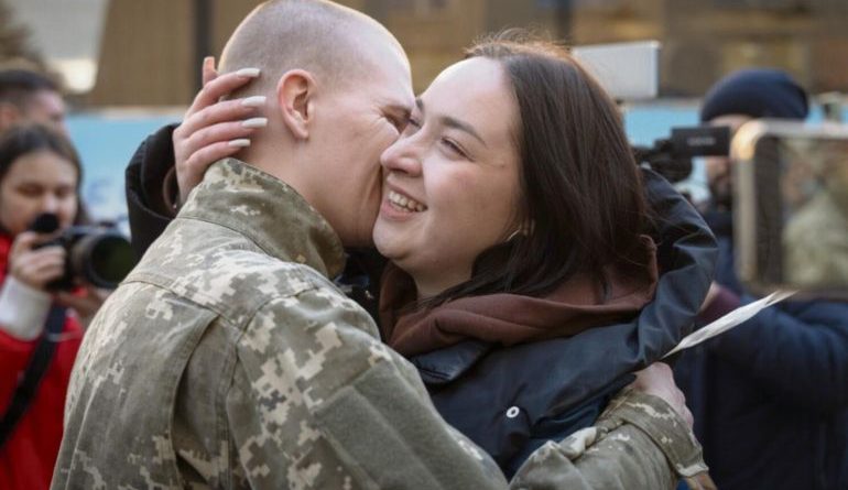 Entre ellos estaba Aliona Skuibida, de 28 años, quien ha añorado durante casi tres años el regreso de su prometido, Andrii Orel, capturado en abril de 2022 durante la brutal batalla por Mariúpol, que finalmente cayó ante las fuerzas rusas.