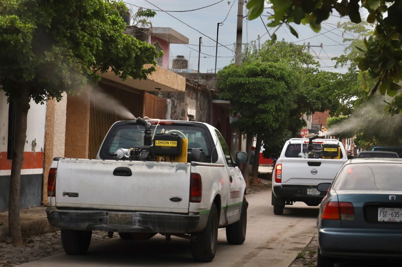 Esta fumigación para disminuir la densidad del mosco transmisor y el riesgo de infectar a la población, se realiza este viernes en Villa de Álvarez, específicamente en las colonias Palo Alto, Liberación, Real Centenario, Solidaridad, Ramón Serrano, La Comarca e Higueras del Espinal.