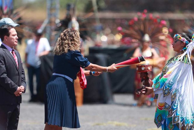 “En la casa de los Dioses teotihuacanos, que nos instan a renovar con mayor fuerza, mayor ímpetu y energía este nuevo ciclo. Que este fuego ilumine el ciclo olímpico, con el cual, con paso firme, con honor y dignidad dejarán huella, los atletas de nuestro continente”, indicó Maria José Alcalá, presidenta del Comité Olímpico Mexicano.