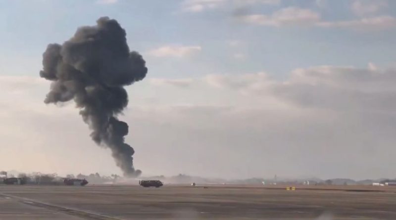 De acuerdo con los bomberos, el accidente fue causado por un mal funcionamiento del tren de aterrizaje. Asimismo, han circularon imágenes del accidente, las cuales muestran la sección del fondo del avión intacta y rodeada en llamas.
