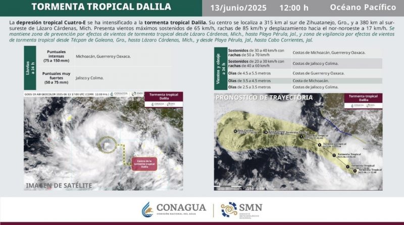 Se ha formado la tormenta tropical ‘Dalila’ en el Pacífico y podría generar lluvias fuertes en Colima; UEPC refuerza monitoreo