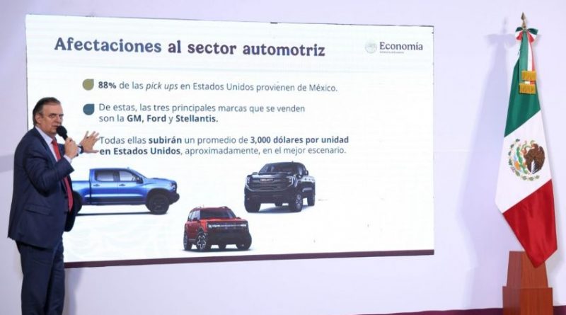 Marcelo Ebrard explicó que una de las industrias con mayor impacto por los posibles aumentos de aranceles será el automotriz, por lo que detalló que los vehículos aumentarían aproximadamente 3, 000 dólares, «en el mejor escenario». Agregó que el 88 por ciento de los vehículos pick ups en Estados Unidos provienen de México, de las cuales, las tres principales marcas son GM, Ford y Stellantis.