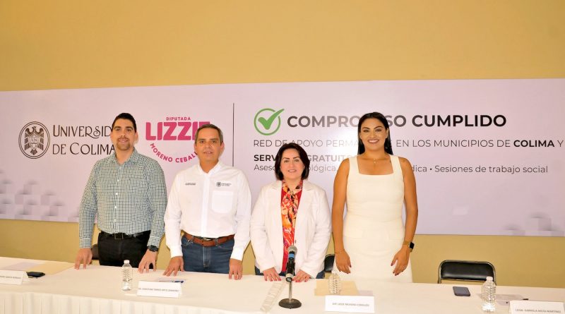 Este fin de semana, la diputada local por el VI Distrito, Lizette Moreno Ceballos, acompañada por el Rector Christian Torres Ortiz Zermeño, presentó el proyecto: Red de apoyo permanente a los municipios de Colima y Cuauhtémoc, en el cual estarán trabajando de manera conjunta la Universidad de Colima, la Federación de Estudiantes Colimenses y los ayuntamientos de Cuauhtémoc y Colima ofreciendo asesorías jurídicas, psicológicas, de trabajo social y nutricionales a la población que lo demande, entre otros servicios.