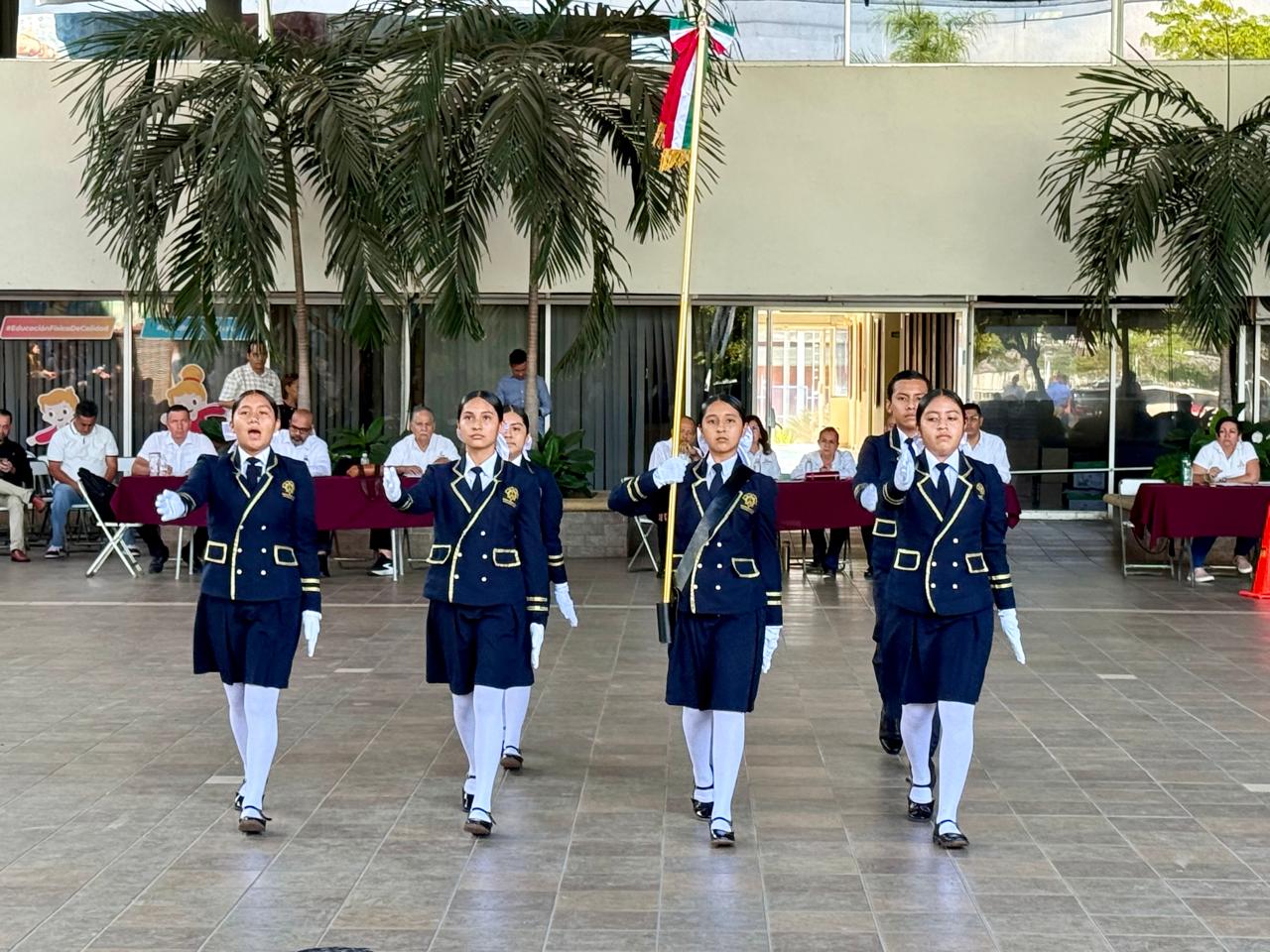 Adolfo Núñez reconoció el alto nivel de desempeño mostrado por las escoltas participantes y explicó que en esta etapa participan las diez mejores escoltas de las escuelas secundarias de cada municipio, quienes lograron su clasificación tras superar las fases intramuros, de zona y municipal, en las que intervinieron alrededor de 114 planteles estatales, federales y particulares; “su presencia en esta fase es ya un triunfo, resultado de su entusiasmo, disciplina, coordinación y responsabilidad cívica”.