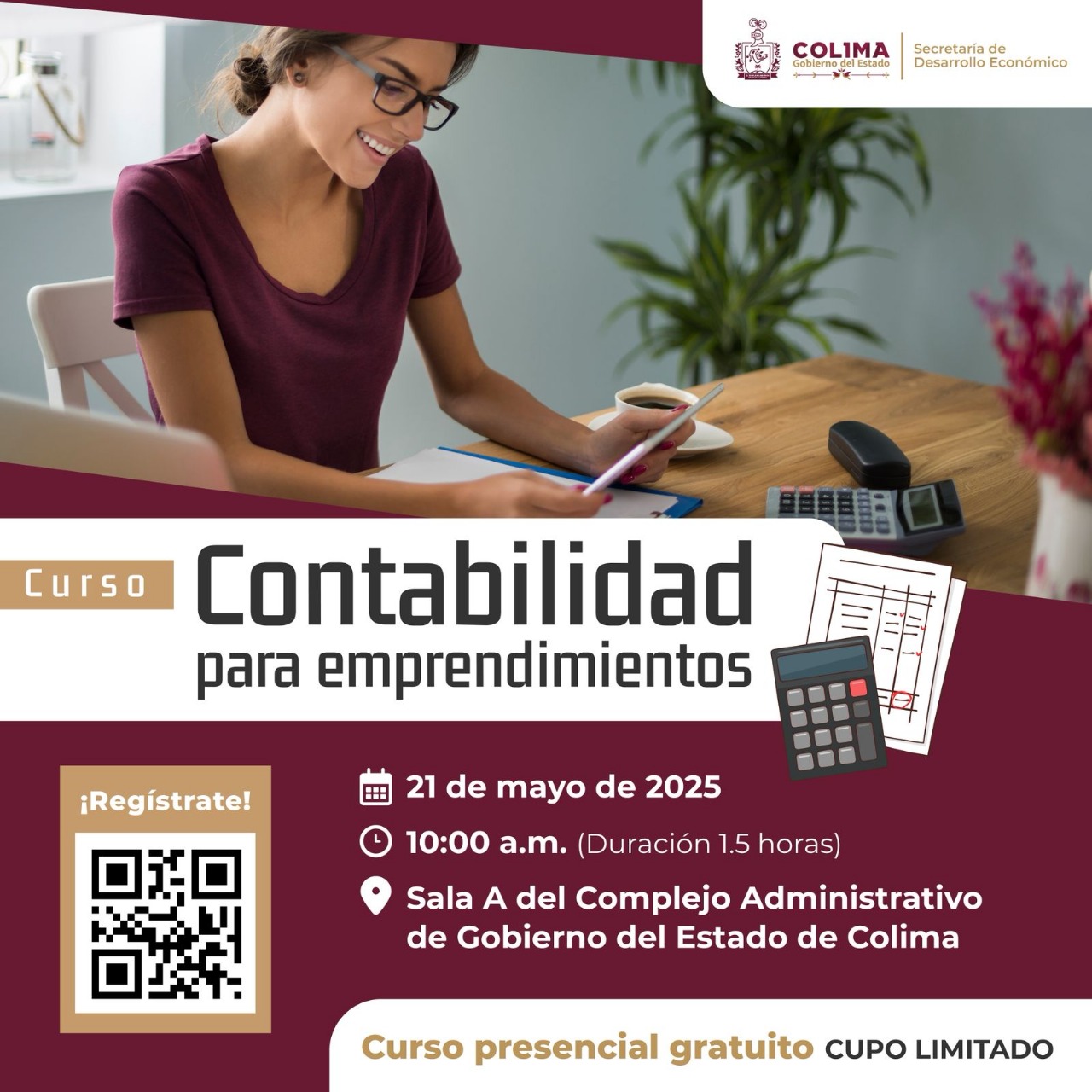 La Secretaría de Desarrollo Económico del Gobierno del Estado de Colima invita a todas las personas emprendedoras que deseen tomar de manera gratuita el curso ‘Contabilidad para Emprendimientos’, una capacitación diseñada para fortalecer las habilidades contables básicas necesarias en la administración de negocios emergentes.