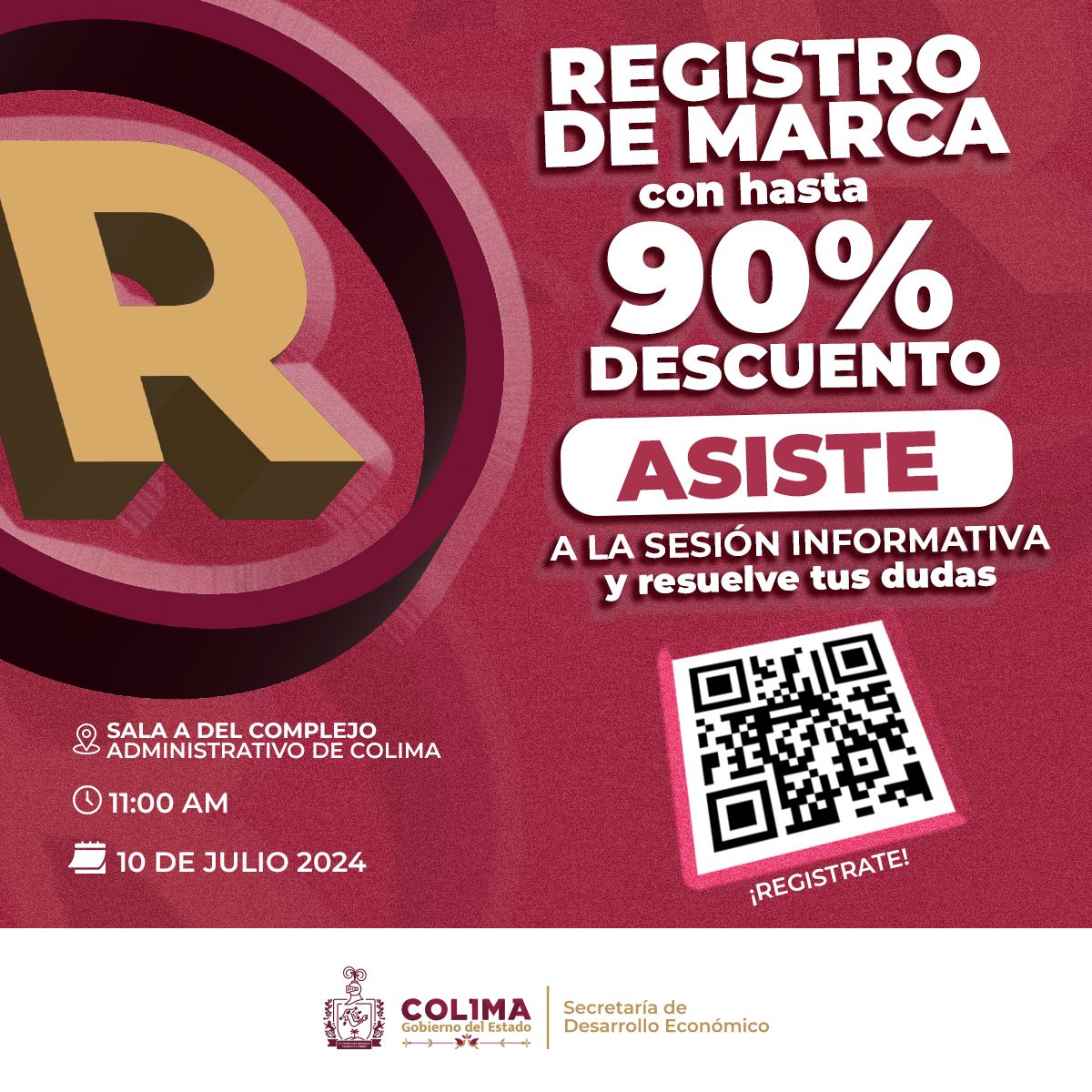 La Secretaría de Desarrollo Económico (Sedeco) del Gobierno del Estado de Colima realizará una sesión informativa –gratuita y abierta a toda la población – para las personas interesadas en obtener mayor información sobre el programa ‘Registra tu Marca o Slogan con el 90% de Descuento’, que realiza en coordinación con el Instituto Mexicano de la Propiedad Industrial (IMPI).