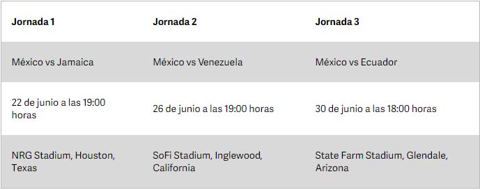 CALENDARIO DE MÉXICO EN LA COPA AMÉRICA 2024