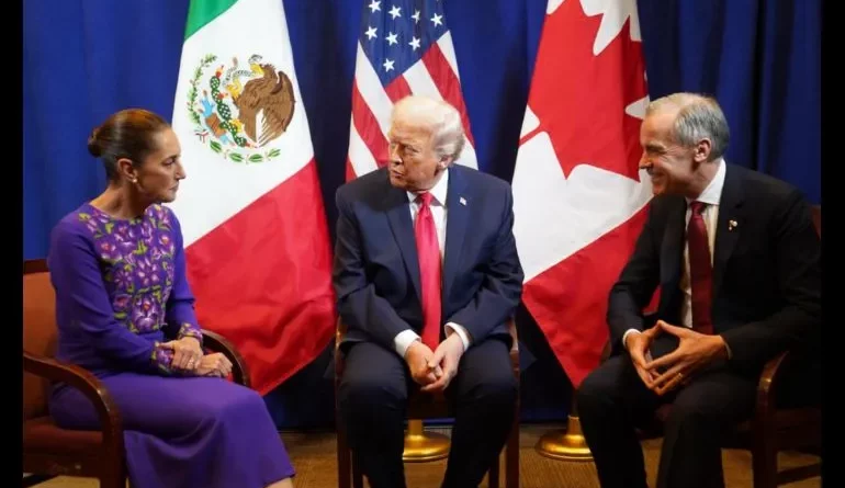 En la red social X, la Presidenta calificó el encuentro con Trump y Carney como “excelente” y destacó que conversaron sobre “la gran oportunidad que representa la Copa Mundial de Futbol 2026 para los tres países y de la buena relación que tenemos”. Añadió que “acordamos seguir trabajando juntos para temas comerciales con nuestros equipos”.