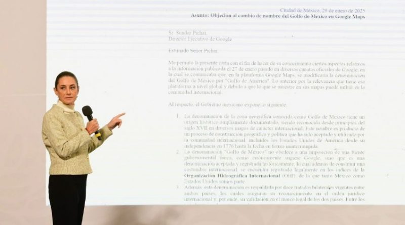La carta que envió la Secretaría de Relaciones Exteriores a Google, para atender la definición del Golfo de México, fue expuesta por la presidenta Claudia Sheinbaum Pardo. En la Mañanera de este 30 de enero, la titular del Ejecutivo federal retomó una convención de Naciones Unidas, acordada en Jamaica en 1982.