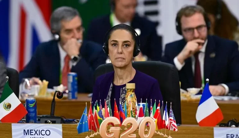 “Con ello, ayudaríamos a mitigar el calentamiento global y restauraríamos el tejido social ayudando a las comunidades a salir de la pobreza. La propuesta es dejar de sembrar guerras, sembremos paz y sembremos vida”, expuso Sheinbaum ante los jefes de Estado del G20.
