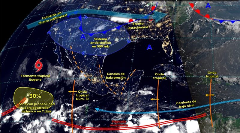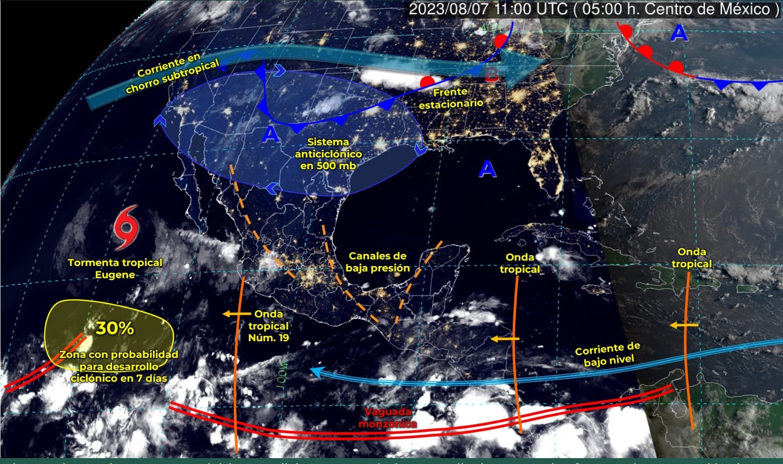 Este lunes 7 de agosto, la onda tropical número 19 se localizará al suroeste del estado de Jalisco y dejará de afectar gradualmente al país, de acuerdo al reporte oficial emitido por el Servicio Meteorológico Nacional (SMN) a las 6:00 de la mañana, por lo que la Unidad Estatal de Protección Civil (UEPC) del Gobierno del Estado de Colima exhortó a la población a estar atenta a la evolución de este fenómeno hidrometeorológico.