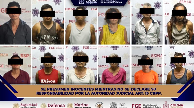 En atención al Eje 4 de la Estrategia Nacional de Seguridad Pública, referente a la coordinación absoluta en el gabinete de seguridad, la Secretaría de Seguridad Pública (SSP) del Gobierno del Estado de Colima informa que, como parte de un operativo interinstitucional con las entidades federativas, se logró la detención de doce personas en distintos hechos ocurridos en los municipios de Manzanillo, Colima y Tecomán, por su probable participación en delitos contra la salud.