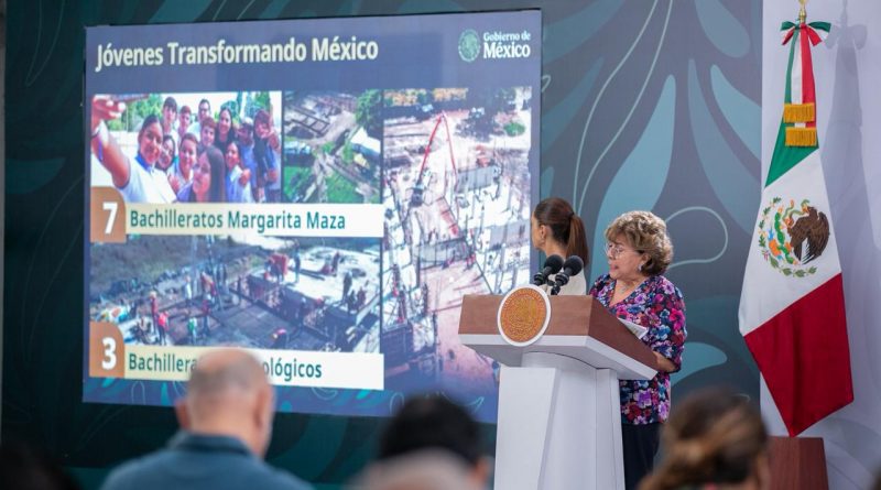 Durante la ‘Mañanera del Pueblo’ con la presidenta de México, Claudia Sheinbaum Pardo, desde Manzanillo, donde también participó la gobernadora de Colima, Indira Vizcaíno Silva, la subsecretaria de Construcción de Paz y Participación Social en la Secretaría de Gobernación (Segob), Rocío Bárcena Molina, anunció la construcción de siete bachilleratos nacionales ‘Margarita Maza’ en esta entidad.