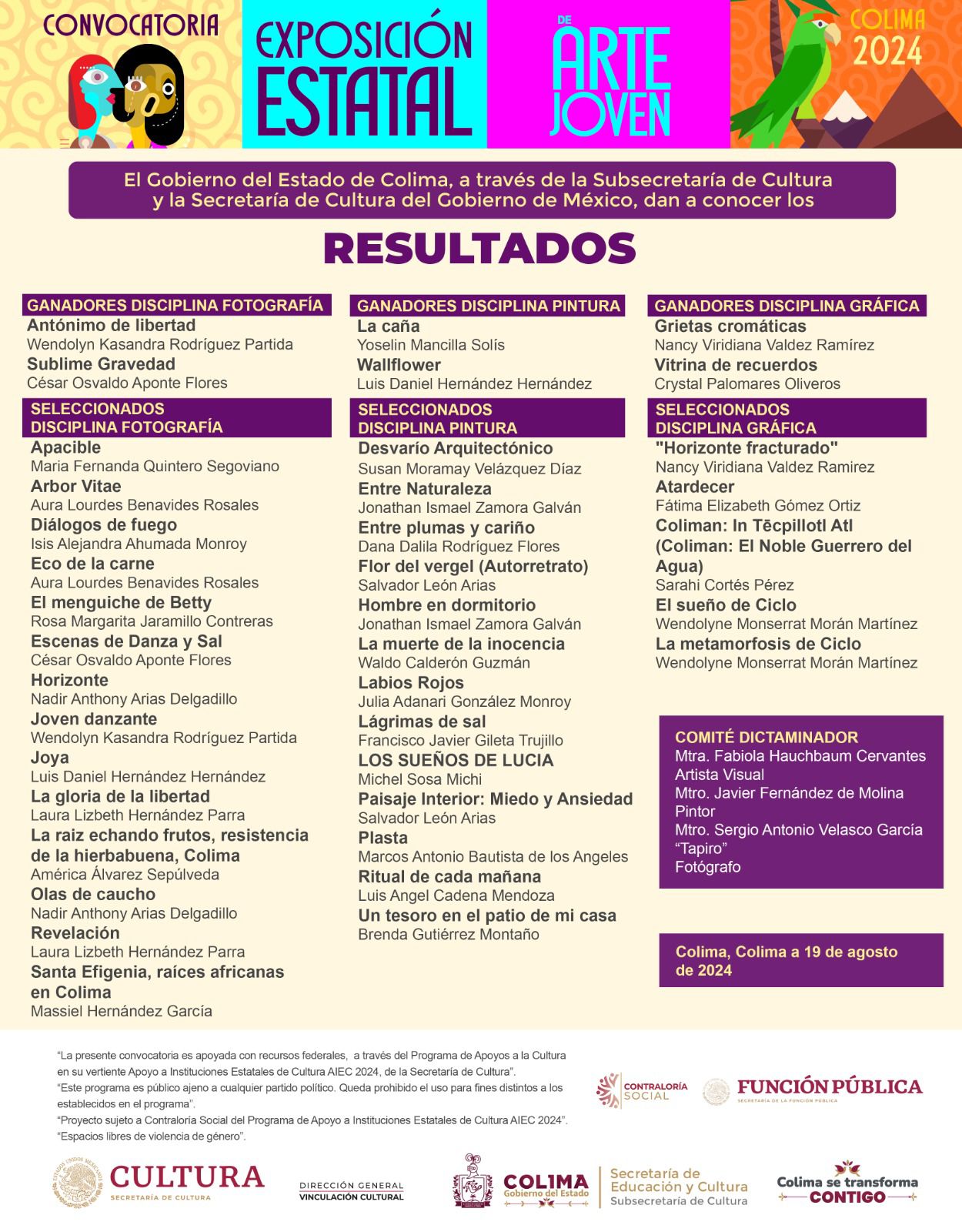 Subsecretaría de Cultura informa resultados de la convocatoria para la Exposición Estatal de Arte Joven Colima 2024