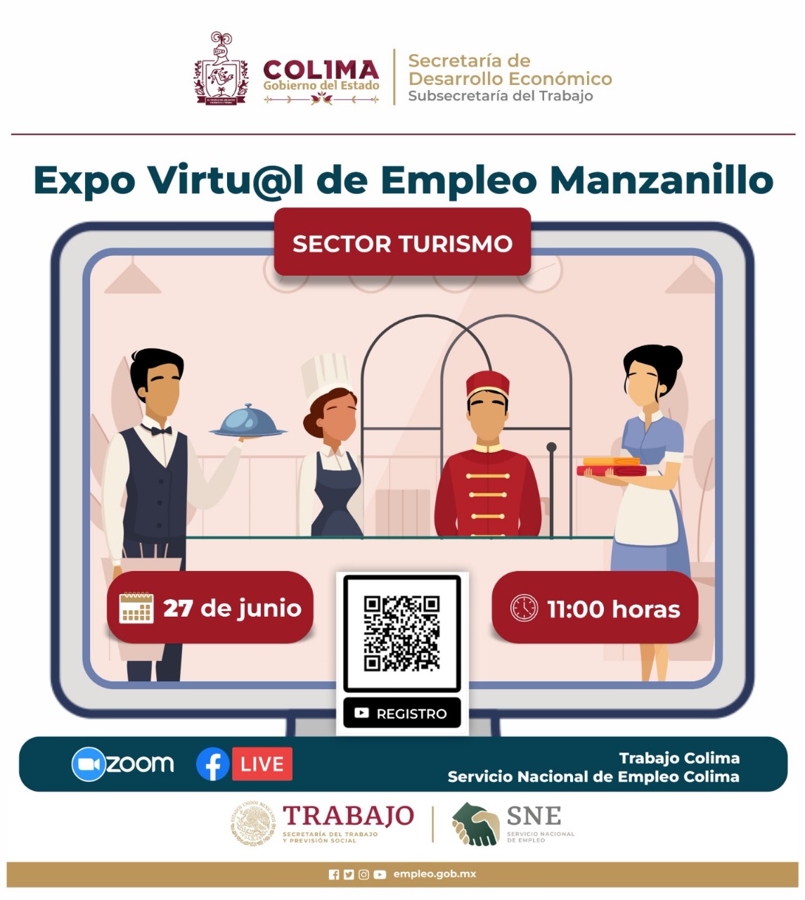 Con el objetivo de fortalecer la colaboración con las empresas locales y agilizar la contratación de personal en el sector turístico, la Subsecretaría del Trabajo del Gobierno del Estado de Colima y la Dirección de Empleo del Servicio Nacional de Empleo (SNE) anuncian la Expo Virtual de Empleo Manzanillo 2024.
