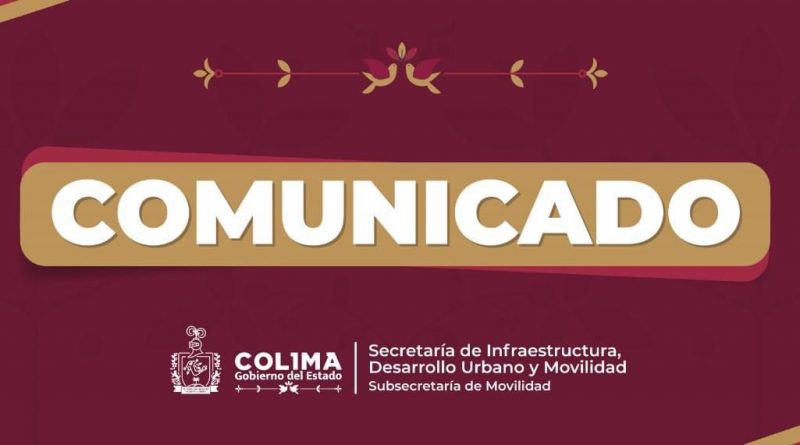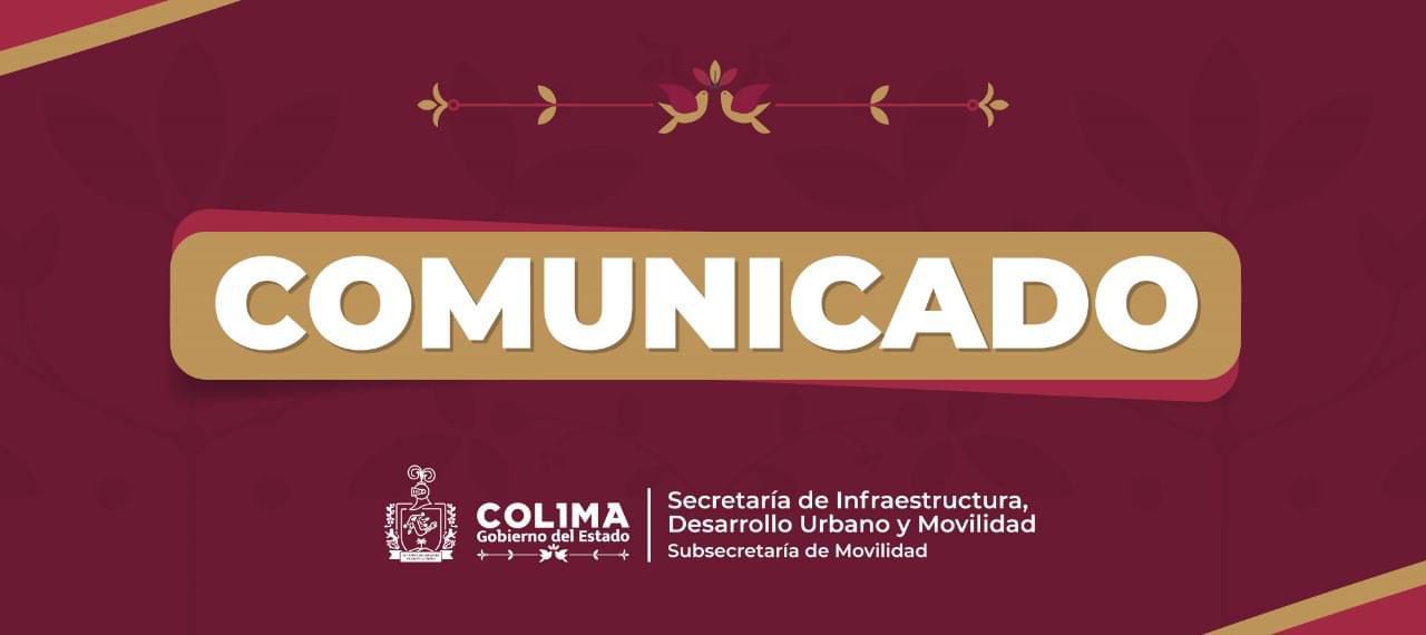 La Subsecretaría de Movilidad (Subsemov) del Gobierno del Estado de Colima informa a la ciudadanía la suspensión de actividades este viernes en sus oficinas de Colima, Manzanillo, Tecomán y Villa de Álvarez, por la alerta roja (peligro máximo), por la cercanía de ‘John’ en el Océano Pacífico.