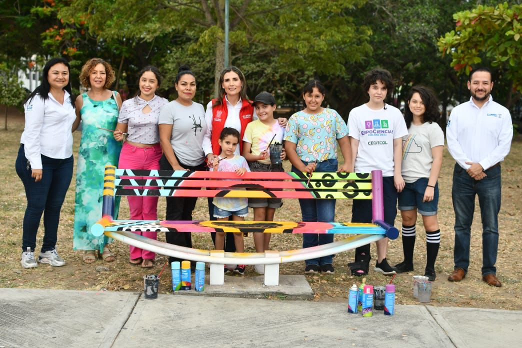Con el arte como medio de expresión, la presidenta municipal de Colima, Margarita Moreno participó junto con niñas y niños en la pinta de bancas, actividad que se configura dentro de la estrategia El Jardín que mereces y cuyo objetivo es el rescate de espacios públicos.
