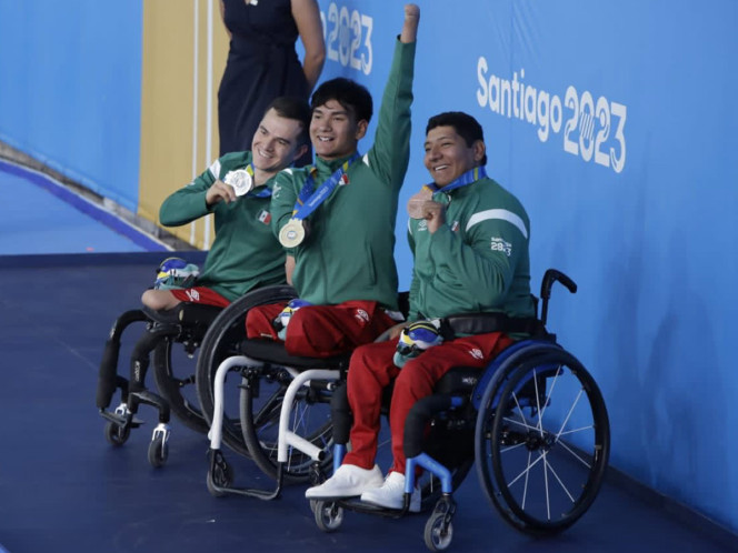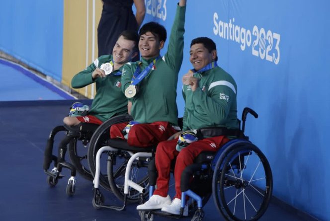 Ángel Camacho, Jesús Hernández y Gustavo Sánchez consiguieron las medallas de oro, plata y bronce en la prueba de 50 metros estilo Dorso en los Juegos Parapanamericanos Santiago 2023; Ángel Camacho también conquistó el récord Parapanamericano.