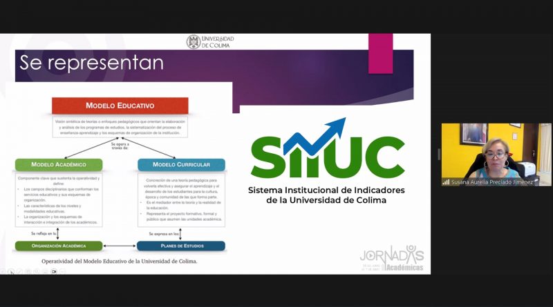 La directora general de Educación Superior de la Universidad de Colima, Susana Aurelia Preciado Jiménez, dijo en una charla virtual, en el marco de las Jornadas Académicas 2023, que el modelo educativo de esta casa de estudios “es un documento vivo, flexible e integral, que aglutina lo pedagógico, curricular y académico”.