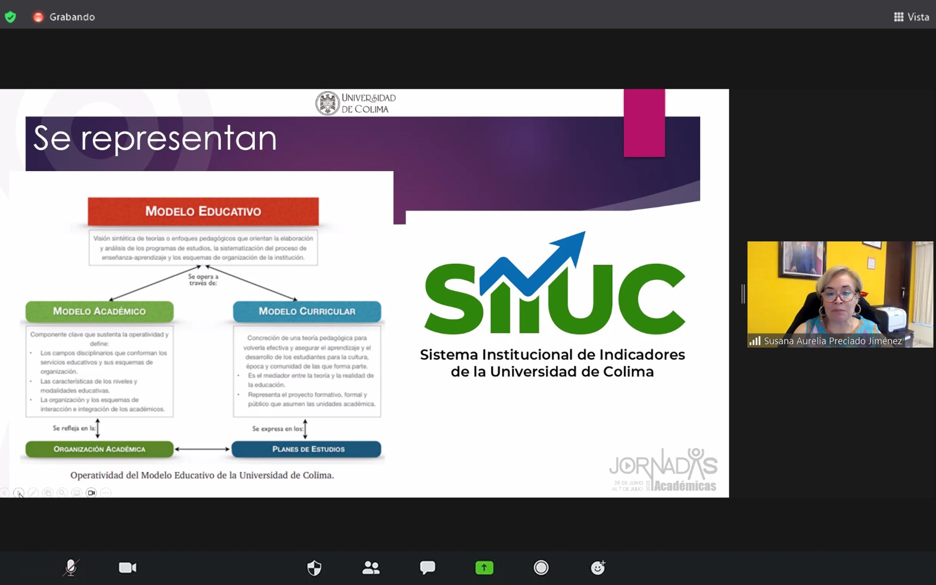 La directora general de Educación Superior de la Universidad de Colima, Susana Aurelia Preciado Jiménez, dijo en una charla virtual, en el marco de las Jornadas Académicas 2023, que el modelo educativo de esta casa de estudios “es un documento vivo, flexible e integral, que aglutina lo pedagógico, curricular y académico”.