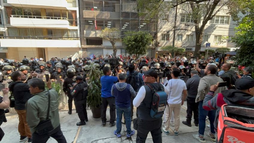 Tensiones entre manifestantes en embajada de Venezuela en México