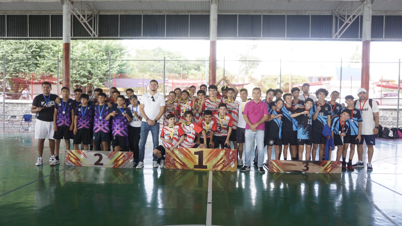 Los equipos que recibieron las medallas por parte de las autoridades fueron en la rama femenil, en primero lugar a Aguascalientes; segundo lugar, Nuevo León y tercer lugar, Estado de México; mientras que en la rama varonil, el equipo que resultó campeón fue Nuevo León; subcampeón Michoacán y en tercer lugar Estado de México.