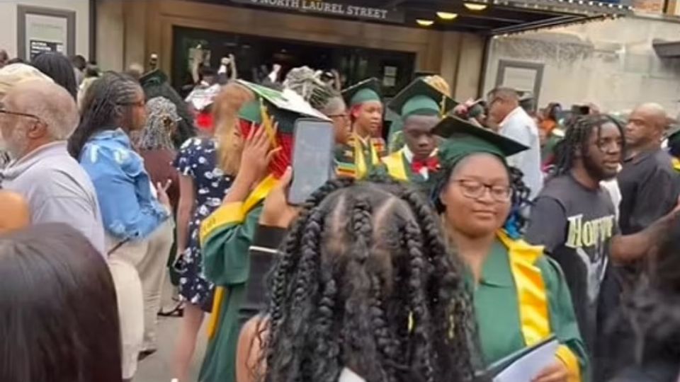 Gracias a los valientes que continuaron los filmes, observamos como la caótica escena comenzó cuando todos disfrutaban del evento. Los alumnos vestían sus togas verdes de graduación y sin motivo alguno llegó el mayor de edad a romper con el momento. Por su parte, el alcalde de Richmond, Levar Stoney, cuestionó a través de una conferencia de prensa: