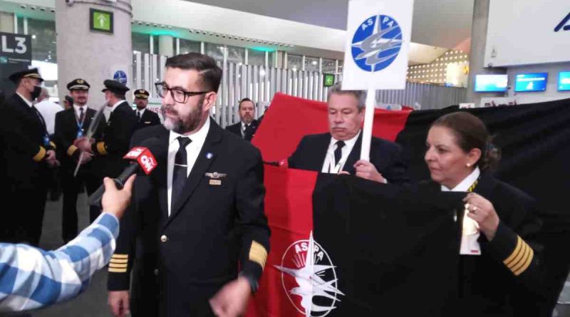 La Asociación Sindical de Pilotos Aviadores (ASPA) tomó las banderas de huelga esta tarde y las desplegó en el AICM.