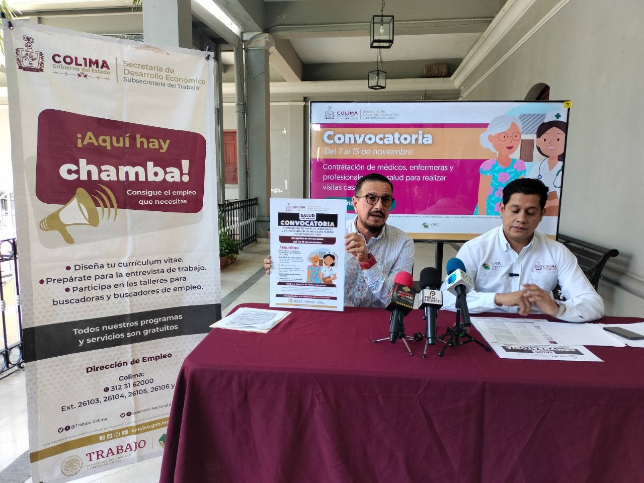 La Subsecretaría del Trabajo del Gobierno del Estado de Colima, en conjunto con el Servicio Nacional de Empleo (SNE), anunciaron el inicio del proceso de reclutamiento para el programa ‘Salud Casa por Casa’, impulsado por el Gobierno de México, iniciativa que tiene como objetivo llevar atención médica a las comunidades más vulnerables, brindando servicios de salud directamente en los hogares a quienes más lo necesitan.