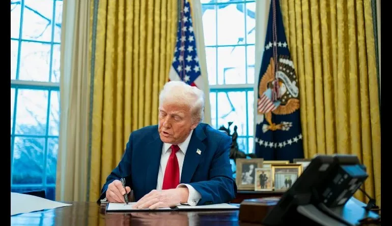 Trump firma orden ejecutiva para imponer aranceles del 25% a México y Canadá