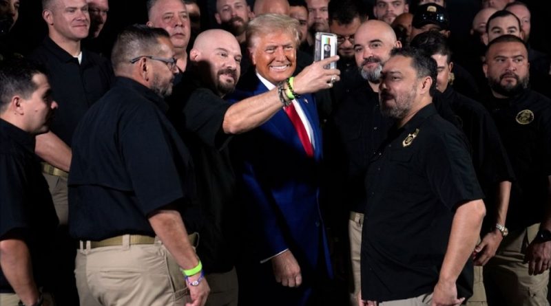 “Si permitimos que Harris —la encargada de aplicar las políticas fronterizas— gane estas elecciones, cada ciudad, cada comunidad de este gran país se irá al diablo”, dijo el presidente sindical Paul Pérez mientras estaba de pie junto a Trump en el escenario, acompañado de un grupo de agentes.