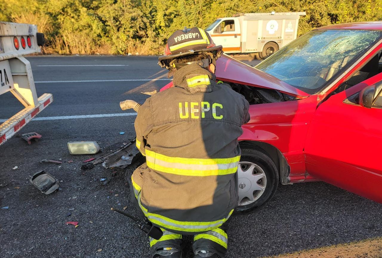 La Unidad Estatal de Protección Civil (UEPC) del Gobierno del Estado de Colima informa que, la mañana de este miércoles se registró un accidente sobre la autopista Colima–Manzanillo, a la altura de la localidad ‘Los Asmoles’, en el sentido hacia la capital del estado, en el que estuvieron involucrados un automóvil Nissan Tsuru y un tráiler.