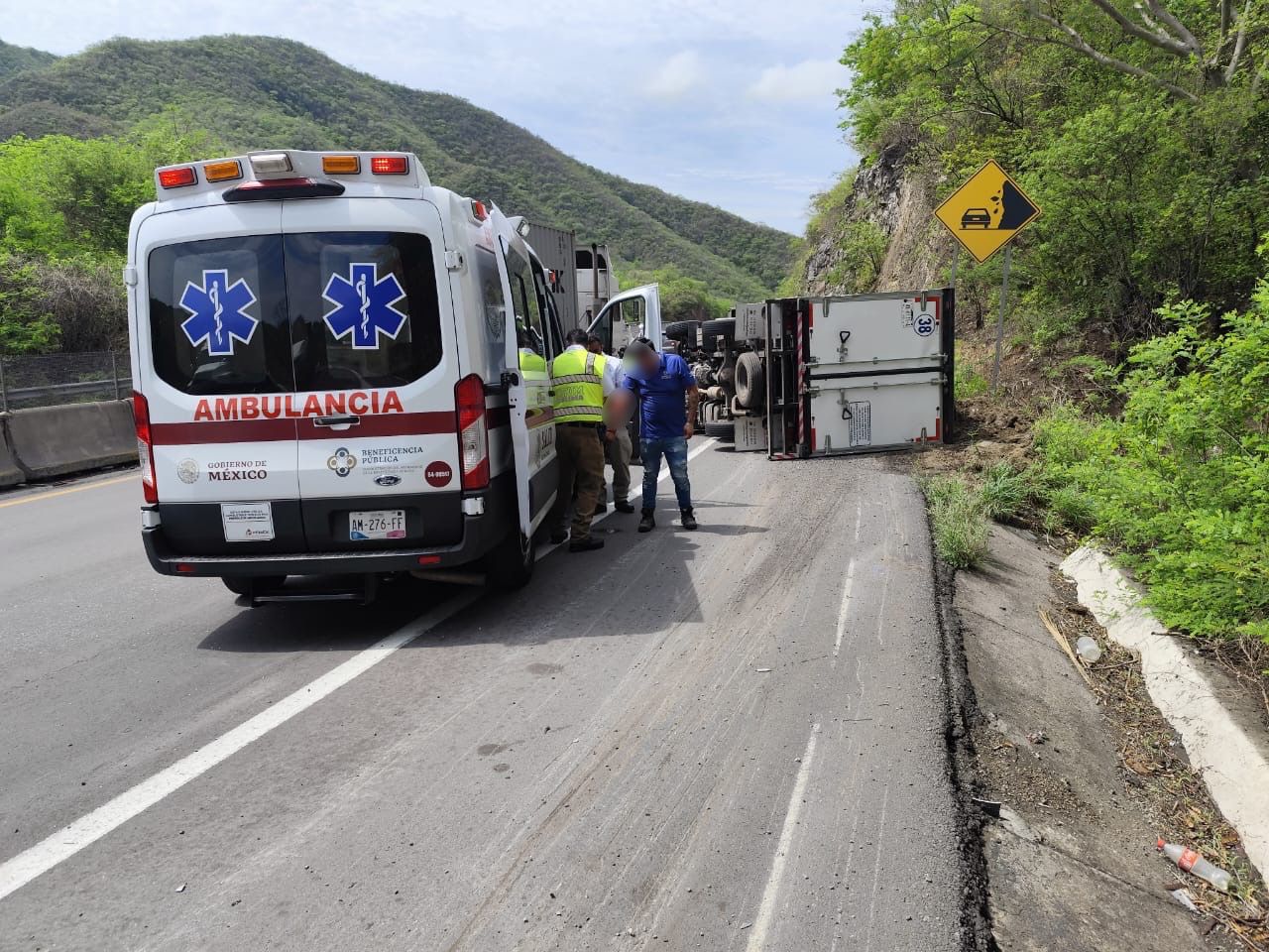 La Unidad Estatal de Protección Civil (UEPC) del Gobierno del Estado de Colima hace un llamado a todas las personas que transitan por la autopista Colima-Manzanillo, a conducir con precaución y respetar los límites de velocidad, pues la mañana de este viernes se registró un accidente carretero a la altura de La Salada pasando el puente La Lupita, donde una camioneta de reparto volcó, quedando sobre la cinta asfáltica.