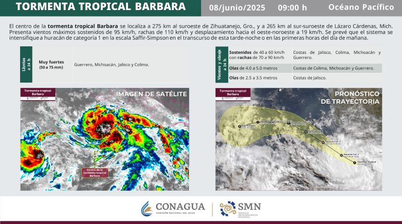 UEPC Colima da seguimiento a la tormenta tropical ‘Bárbara’ en el Pacífico; este lunes podría ser huracán