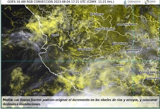 Pese a que el organismo dependiente de la Comisión Nacional del Agua (Conagua) informa que no se prevé un impacto en el territorio nacional, entidades como Colima, Oaxaca, Guerrero, Michoacán, Jalisco, Nayarit y Baja California Sur, registrarán lluvias de fuertes a puntuales intensas entre este viernes 4 y sábado 5 de agosto.