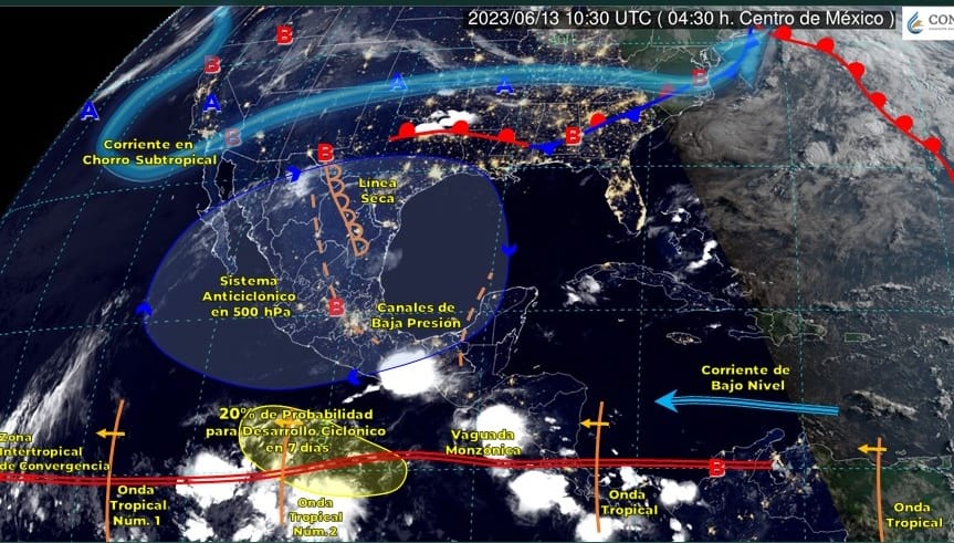 El organismo dependiente de la Comisión Nacional del Agua (Conagua), las temperaturas máximas hoy alcanzarían de 40 a 45°C: Colima, Jalisco, Michoacán, Guerrero, Nayarit, San Luis Potosí, Morelos, Baja California, Sonora, Sinaloa, Oaxaca, Chiapas, Durango (occidente), Chihuahua (noreste), Coahuila, Hidalgo, Veracruz, Tabasco, Campeche y Yucatán; mientras que la temperatura mínima descenderá de 0 a 5°C en zonas montañosas de Baja California, Chihuahua y Durango.