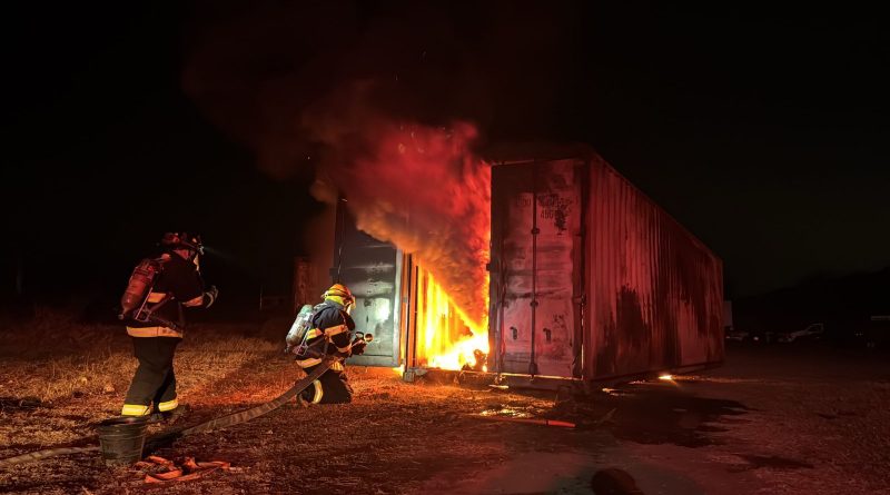 La noche de este lunes 16 de diciembre se reportó al número de emergencias (911) el incendio de un contenedor sobre la autopista Colima-Manzanillo, a la altura de una empresa cervecera.